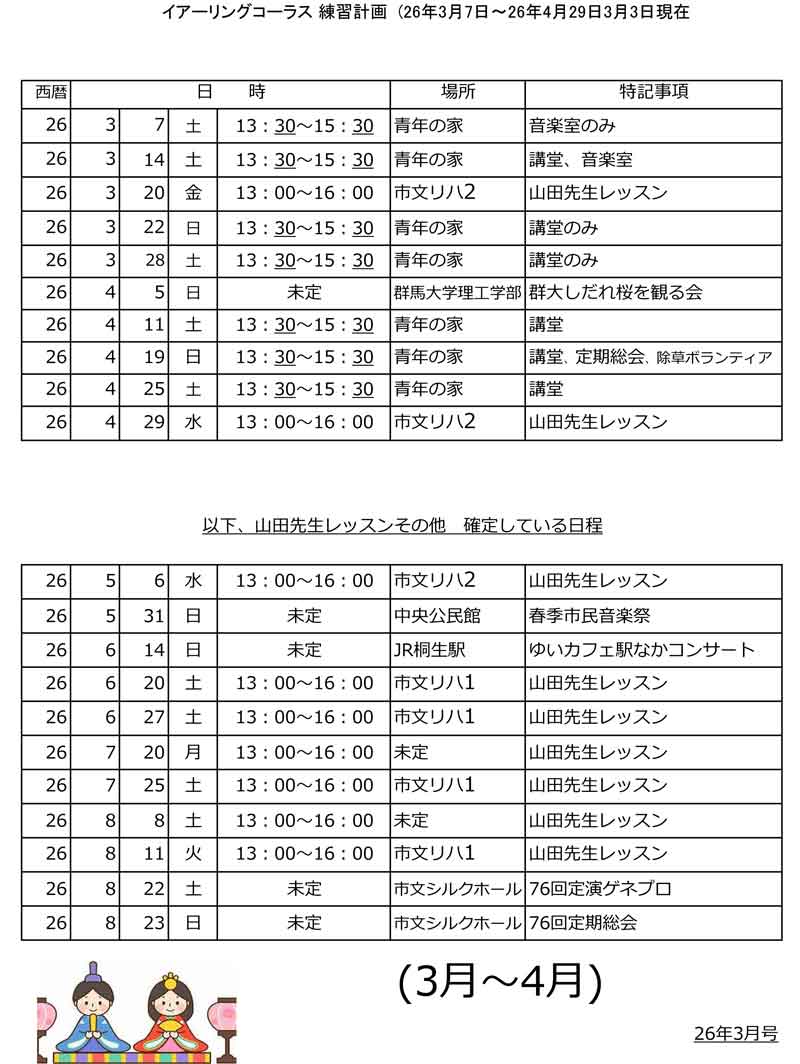 イアーリングコーラスの練習・活動計画